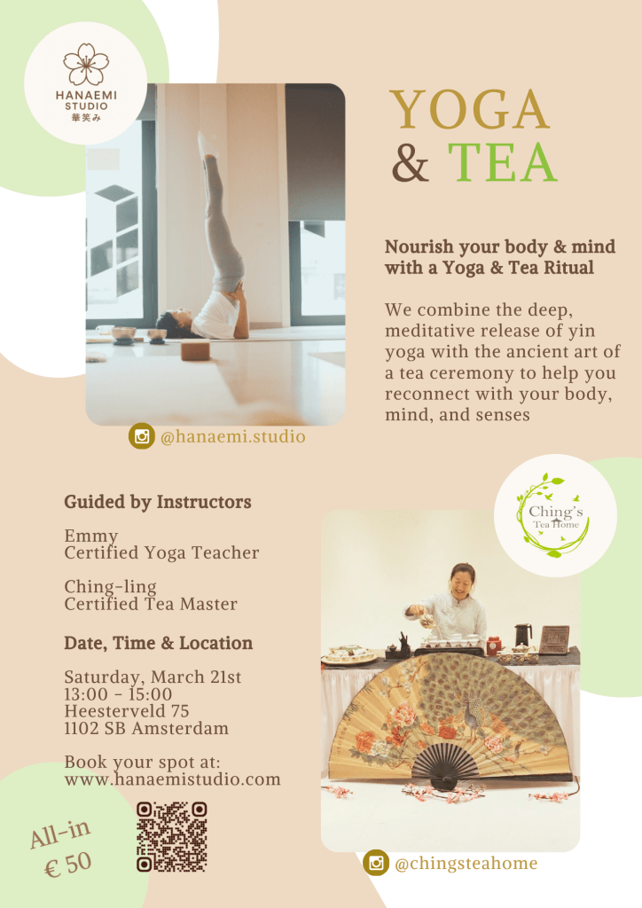 Op 21 maart, het begin van de lente, mocht ik samen met Ching-Ling een bijzondere yoga- en theeceremonie verzorgen. Een moment om bewust te vertragen, stil te staan en ruimte te maken voor hernieuwde energie voor de lente. 🌸